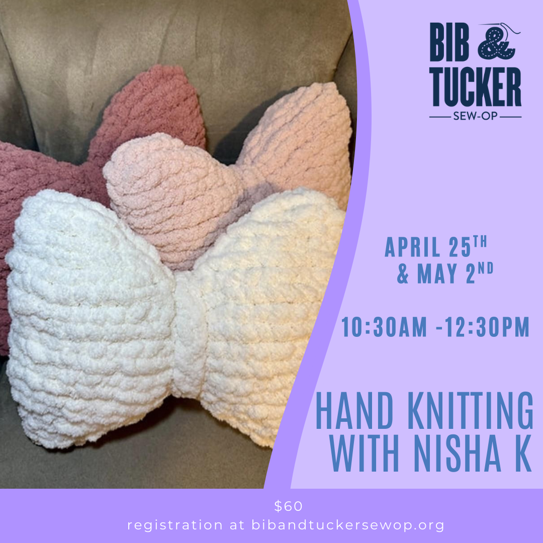 Join Era’Nisha Kidd as she introduces you to hand knitting. Yes, you read that correctly, NO NEEDLES NEEDED! This class is perfect for beginners who want to learn the fundamentals of hand knitting, no prior experience is necessary. You will be guided through each step with live demonstrations and one-on-one assistance. Join us for a fun and relaxing time as you discover the joy of hand knitting basics where you will make bow pillow and chunky shoulder bag! This class is open to students aged 10 to adult.